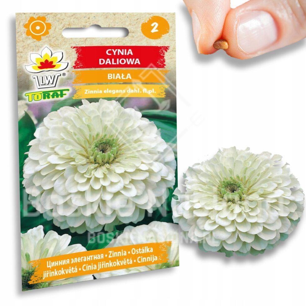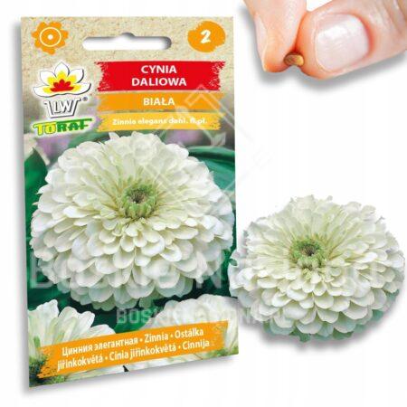 Nasion kwiatów CYNIA DALIOWA Biała kwiaty okazałe białe pełne